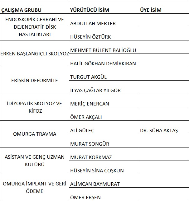 Alanlarında ve konularında uzman hekimleri bir araya getirmek; çalışma grup konusuyla ilgili alanda projeler üretmek, web sitesine içerik önerileri üretmek, bilimsel çalışmaları organize etmek çalışma gruplarının kuruluş amacını oluşturmaktadır.